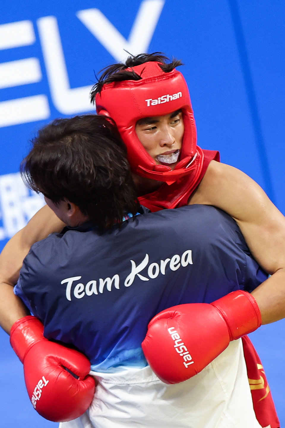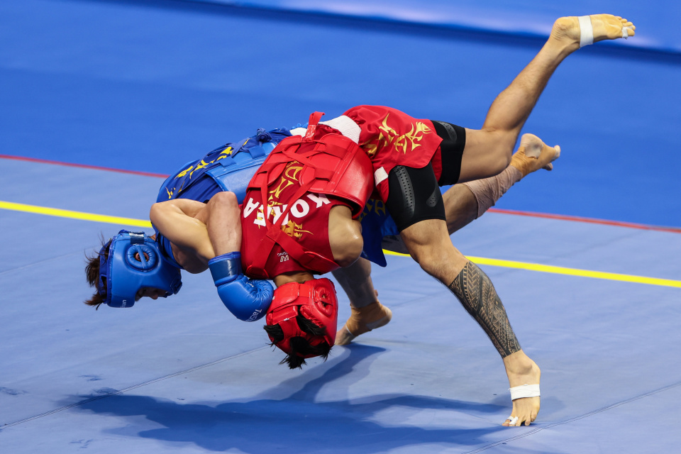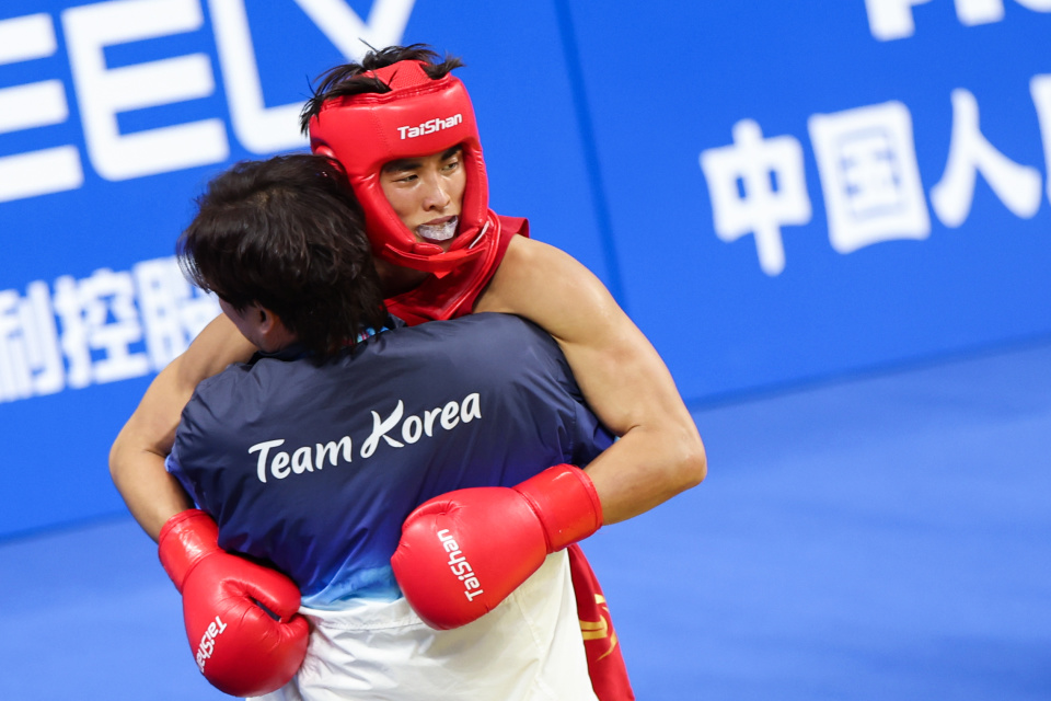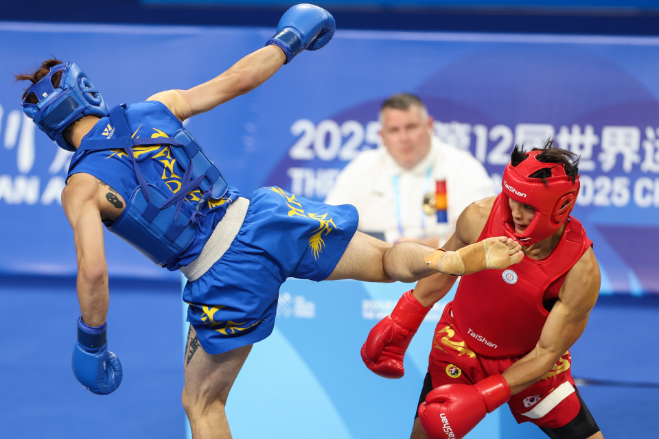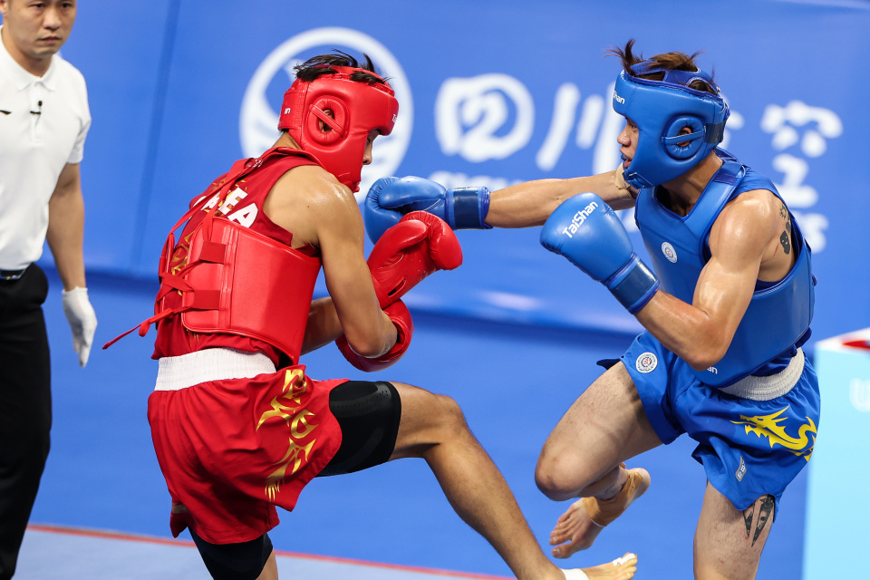 当日,在2025年成都世运会武术男子散打70公斤级金牌赛中,韩国选手宋起哲战胜中国香港选手张溢霖,获得冠军。